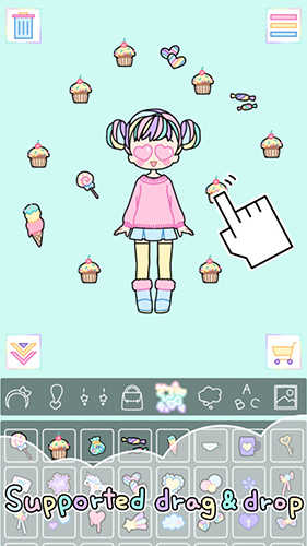 用很多衣服,物品,声音泡泡和字母装饰你可爱的女孩。