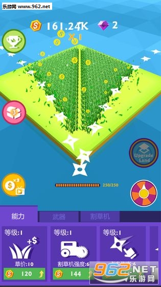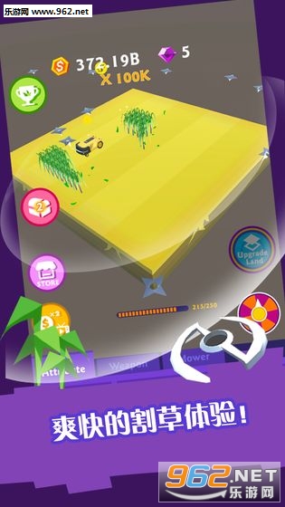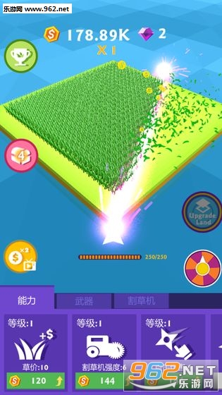 收割一块块土地,获得金钱,升级你的武器和割草机,前往更富有的地块,简单、耐玩,最棒的消磨时光利器。