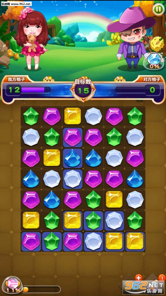 2、炫酷华丽的宝石粉碎特效,七彩缤纷的炫酷宝石等你移动消除,可爱精灵伴你踏上游戏旅程。