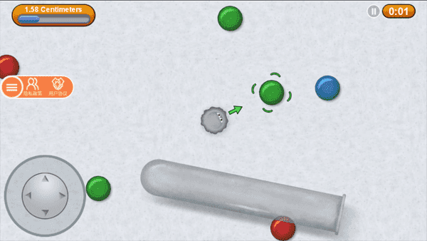 1、初次进入游戏会有新手引导,教你如何操控这个可爱的怪物,并学会吞食比自己更小的物体。
