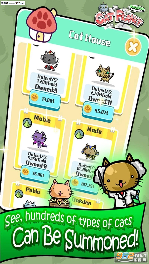 2、有很多可爱的小猫,为了让猫行星不断增长,不断收集猫罐头吧!