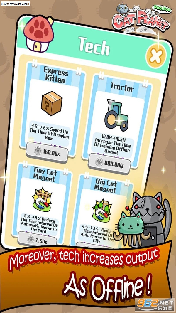 2、更好的技术意味着离线时更多的钱,更快地获得新品种的猫。