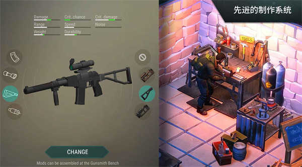 2、面对僵尸和其他生存者的威胁,升级技能制作武器来抵御入侵的僵尸大军;