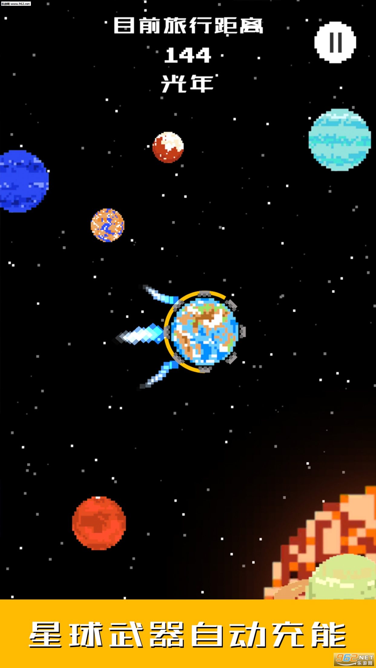 《地球我们走安卓版》是一款非常好玩的像素风格休闲街机类游戏,游戏以恢弘壮观的宇宙为背景,采用像素的画面设计,玩家在游戏中控制你手中的地球躲避其他星球的撞击,不断地向前推行,玩法简单,可以下载游戏打发时间哦!