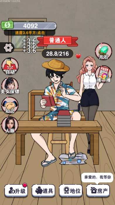 ①客户有自己的属性,可以用元宝刷新客户属性,选择租金高的客户入住。每个客户有不等的入住时长,房间等级越高,客户选择续租的可能性越大。