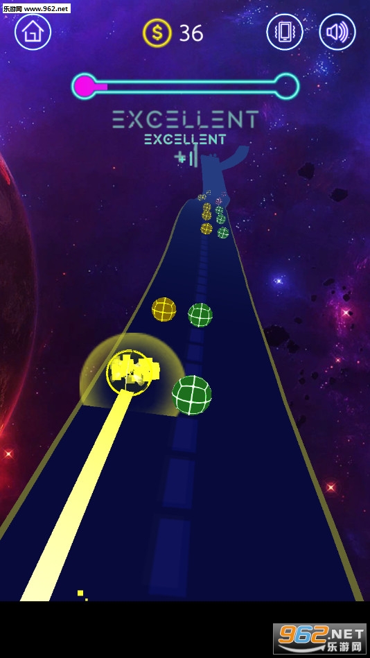 2、精美的游戏换面,各种美丽的宇宙星空背景加上炫酷的霓虹彩球,精彩的视觉盛宴;