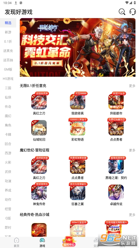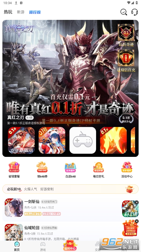 5000余款正版游戏,0.1折无限玩,送648红包,满级VIP、GM特权、海量礼包!