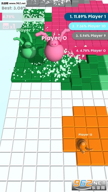 2、你踩碎的方块越多,小人的体积就会越大,这样你就可以去击败同场的玩家,站到最后,赢得胜利。