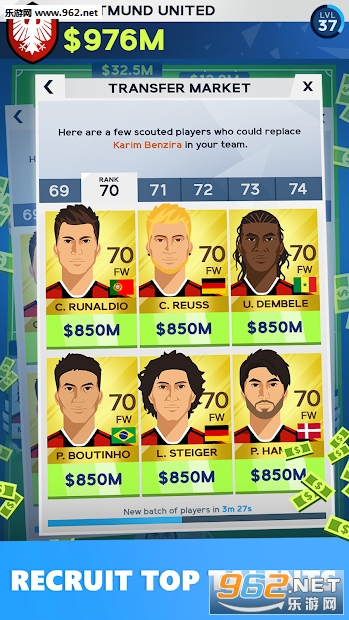 在转会市场招募顶级球员,打造你的梦想团队(进攻、中场、后卫等)