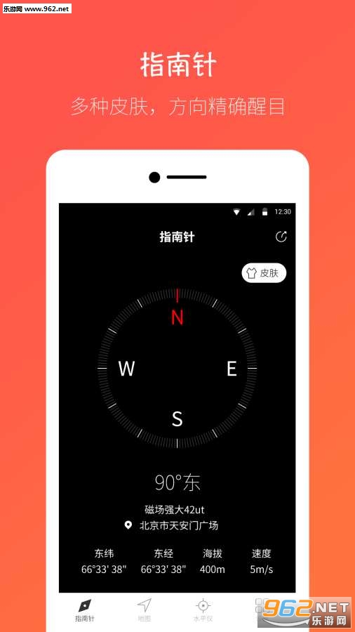 桔子指南针,内存占用小,省流量。支持多种指南针皮肤。帮助您辨别方向,简单易用。