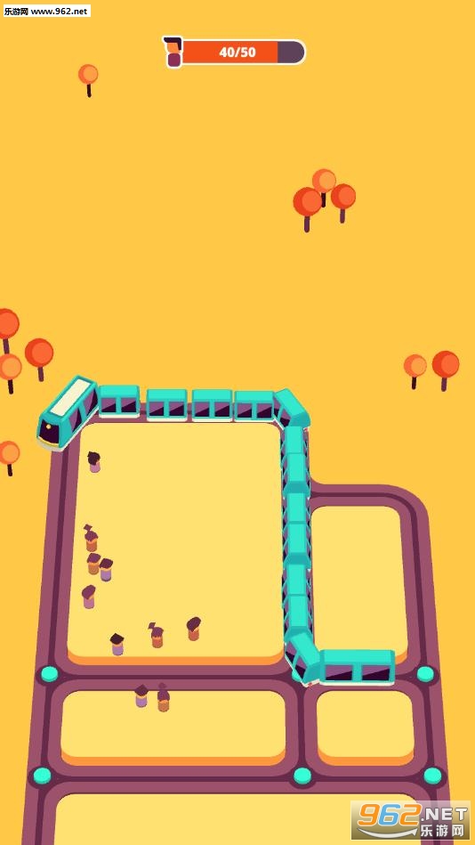 《Train Taxi》游戏的画风十分的简约,你将需要驾驶着火车行驶在多个不同的轨道上,去载上沿途的乘客们,收集的人越多,火车就越长,你需要注意不要撞车哦。