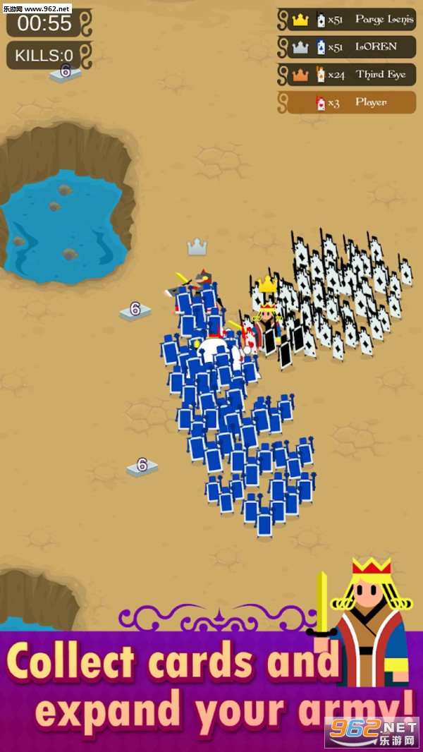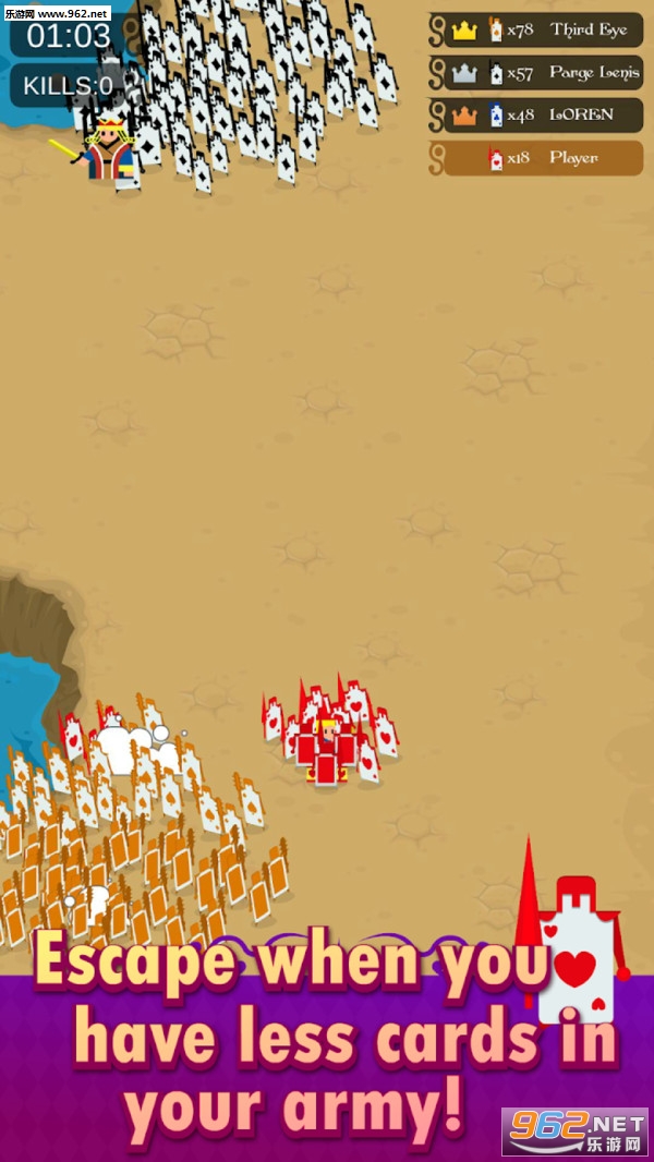 卡牌大乱战是一款趣味性十足的多人对战手游,进入游戏中四大牌之间将开始一场大战,只有最好的一场才能获胜。选择你的军队,你想要玩的牌数,并挑战你的朋友!控制你的军队,以打败对方,收集卡片,不要掉进洞里!之后,您最多可以与4位朋友一起玩!