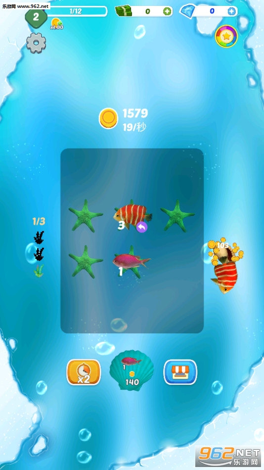 5、不断合并相同的小鱼,鱼越多,鱼越大,你将来获取的收益也会越多,海洋种类也越丰富。
