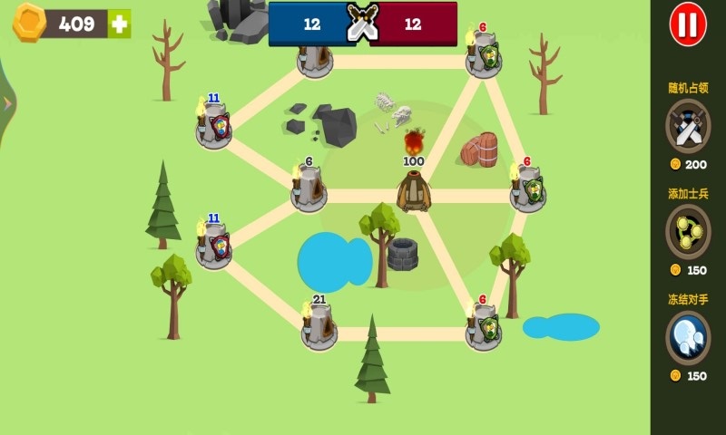 趣的策略放置塔防游戏,玩家在游戏中需要搭建自己的兵营用于士兵招募,提升自己的队伍士兵数量,当招募士兵数抵达上限的时候,可以派遣士兵对敌军进行袭击,当你消灭了所有敌人并且占领敌方阵地后,你将占领这一片土地,进一步的开拓你的领土面积,你将获得胜利!