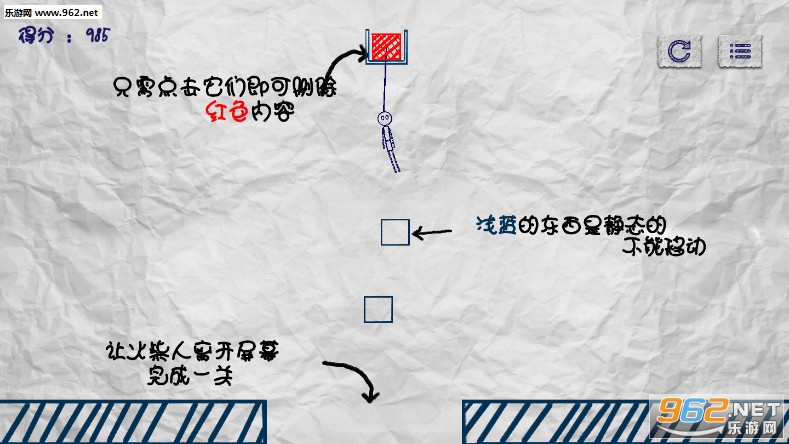 趣味的割绳子游戏,玩家需要在合适的时机点击红色的部分,让火柴人能够掉下来,有着众多的关卡可以挑战,注意不要让火柴人留在了屏幕内,喜欢的朋友可以下载试试。