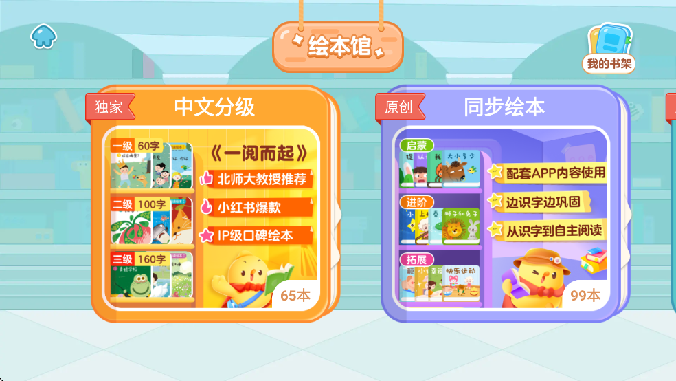 有趣故事:通过识字儿童游戏推进故事发展,强化记忆。