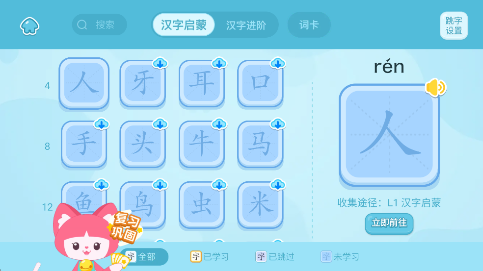 《叫叫识字》是一款为小朋友们打造的汉字学习软件,软件中有着生活中常用的汉字,每个汉字都有着配音和配图,想象的卡通图案能让小朋友们记得更加的深刻。立即下载App,让孩子在星球冒险中开启汉字启蒙之旅!