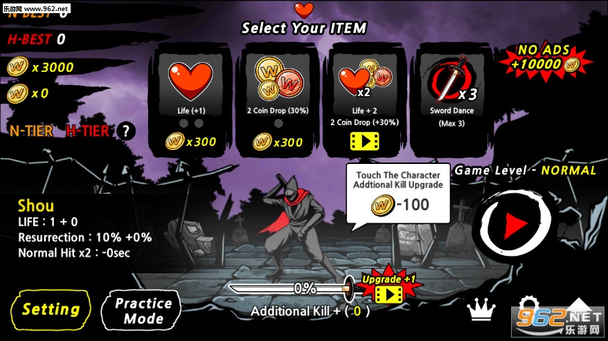 3、难度越来越大,玩家在游戏中可以拿起金币和血液等道具,金钱可以帮助你购买更强大的武器!