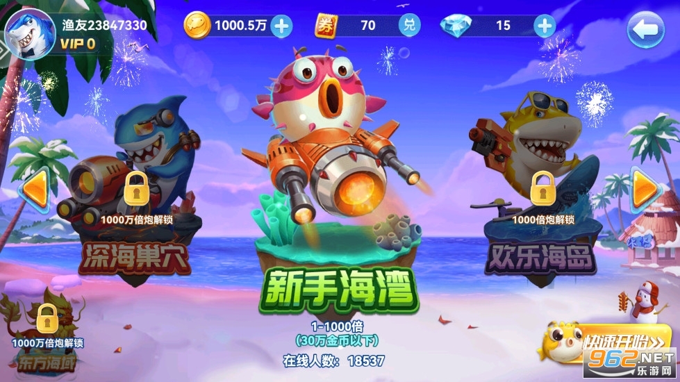 《趣游捕鱼》是一款好玩的手机捕鱼游戏,这次为大家带来的是趣游捕鱼的vivo版本,朋友们可以使用vivo账号进行登录,游戏中有着各种不同的模式可以自由选择,玩家可以前往一个个渔场去冒险,捕捞来往的各种鱼儿。