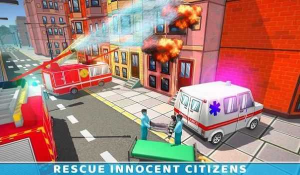 在游戏中玩家可以驾驶救护车和消防车两种救援车辆完成任务。