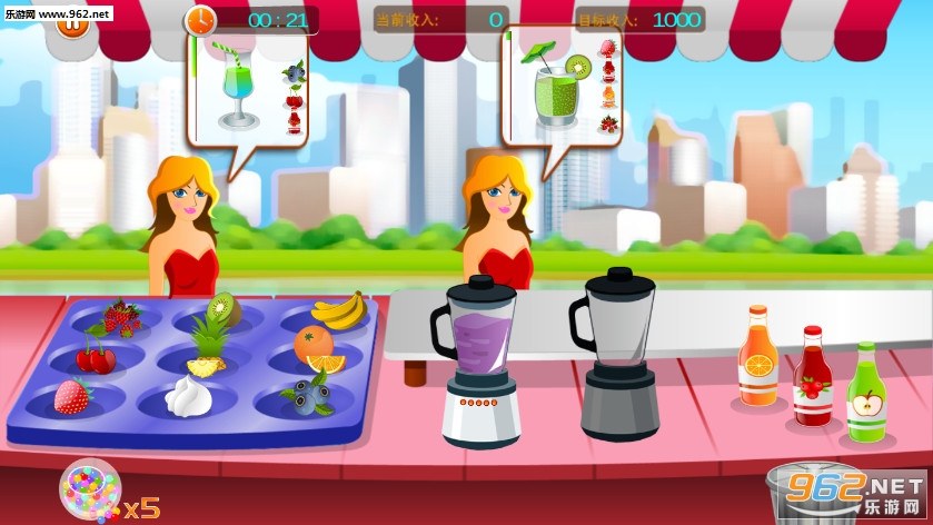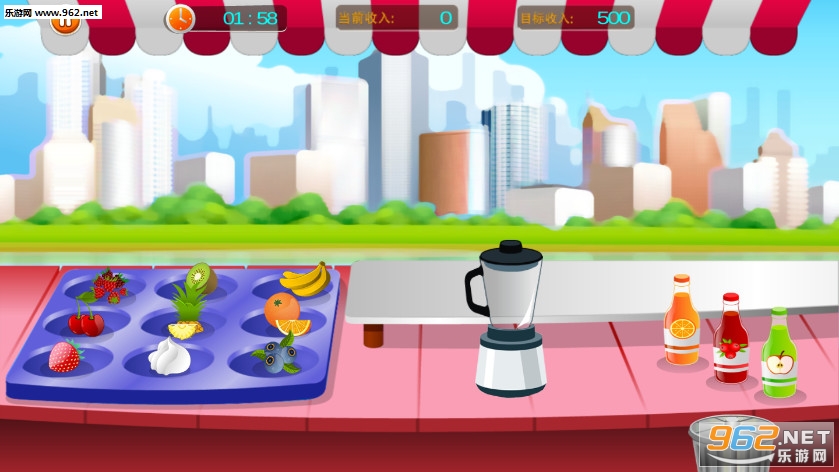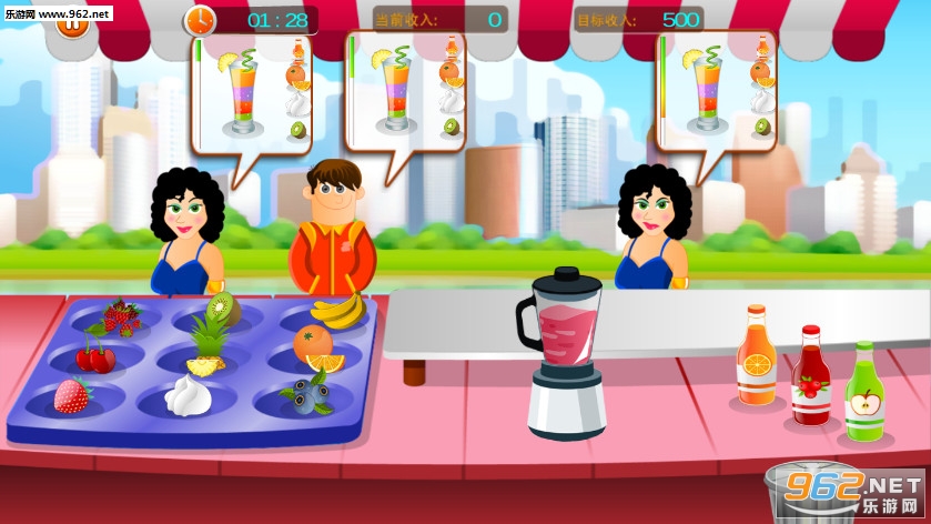 趣味的经营游戏,玩家可以将各种不同的水果搭配在一起制作出多样的美味饮料,买给顾客后可以获得一定的收益,注意不能配错了或者让顾客等久了,喜欢的朋友可以下载试试。