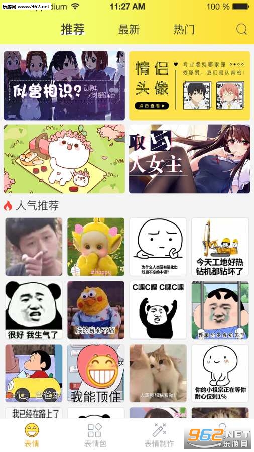 《表情包大全app》是一款为朋友们打造的聊天表情合集,表情包大全软件中有着众多的表情资源,有着熊猫头、小坏坏、糯米团子、僵小鱼等众多的模型,丰富的表情治愈等着你来使用,还可以自己制作表情。