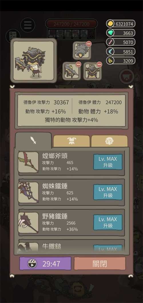二岛和一岛差不多,建议先忽略中间boss,直接蜥蜴打最终boss,尽量开格子,打完去三岛刷动物再回来,建议20只以上蜥蜴打的时候记得包围 boss和躲技能,实在打不过可以带金苹果或针对boss的勋章(对指定boss伤害x2,有点亏)