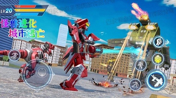 怪兽进化城市逃亡游戏是一个画面制作精致亮丽的趣味性战斗游戏,游戏中你将操作着机器人去进行战斗比拼。用各种武器去进行射击战斗,消灭更多怪兽保护城市安全,炫酷的技能特效搭配亮丽的画面设置,可以带给玩家最真实的游戏体验感。