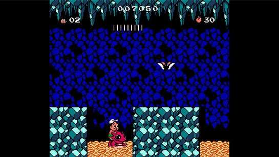重点是之后的一个石头,打烂后会奖命一条,并且马上又可以得到一条三角龙,这样的话,只要这关开始选择一条可以打烂石头的恐龙或者是带一个回旋镖,那么只要稍微注意一点,就可以在这关一直循环下去,通过3选1的奖励,刷恐龙和命,这样的话,只要费点时间,那么恐龙和命都能刷上去。曾经玩没有任何道具的卡带时,在这关花费了大量的时间,每次刷到3条命或者飞龙时,都很高兴,可惜的是,还是没能通关。