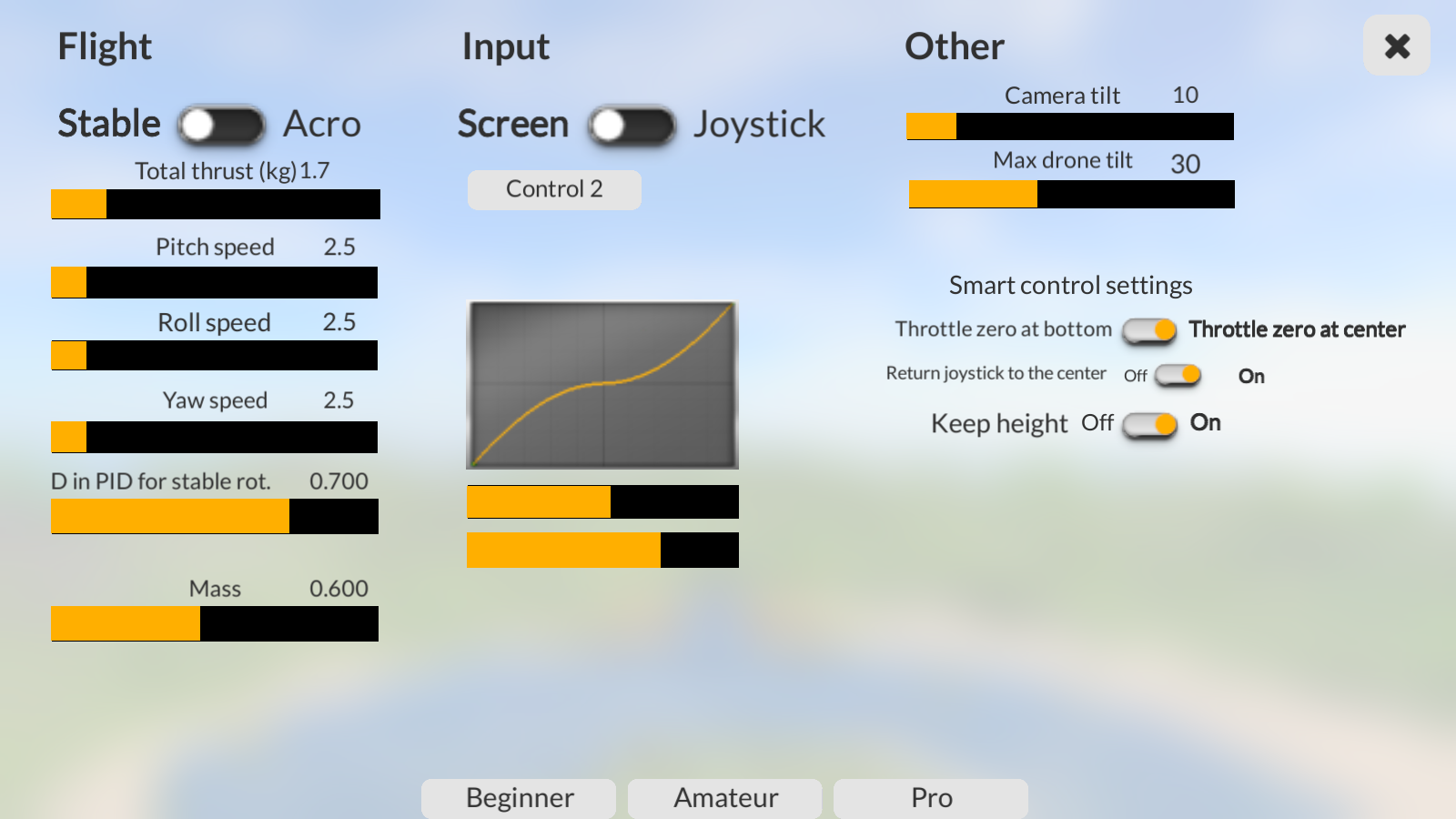 1、使用模拟真实场景,控制无人机在蓝天白云下自由翱翔。