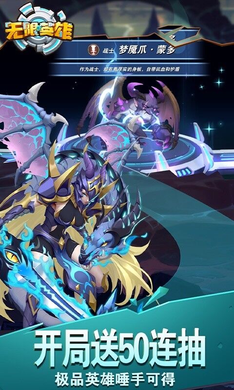 《无限英雄》是款休闲放置卡牌手机游戏,包括早期放置挂机、中期休闲养成和后期策略经营。游戏共设12个主要种族,有6种职业英雄坦克、士兵、刺客、法师、射手和助手。通过不同牌英雄的组合,不同阵型有不同的束缚属性效果,形成强大的战斗群战斗力,挑战战斗、空塔、失落城堡、复制品和竞技场,与朋友挑战不同难度的玩法。