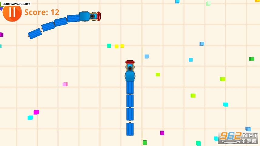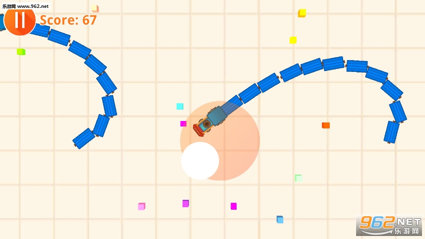《贪吃的火车安卓版》是一款画面精致的以贪吃蛇为题材制作的收集躲避类休闲手游,游戏中玩家将控制一辆火车明星冒险,地图中会出现众多的方块颗粒,玩家的任务就是尽可能多的收集这些颗粒,让自己的火车变得更加的长,注意不要撞击在其他火车上了。