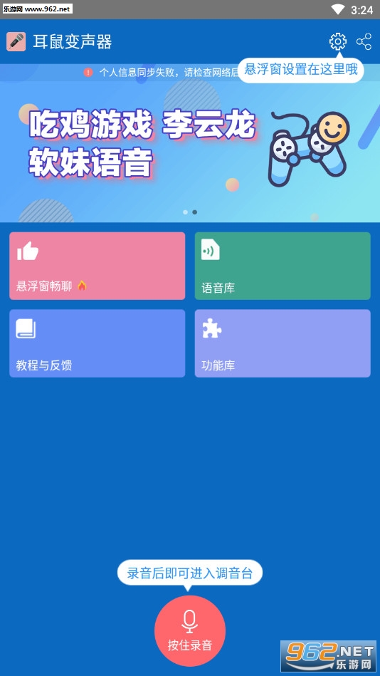 耳鼠变声器app是一款非常流行的变声软件。现在无论是抖音还是绝地求生刺激战场吃鸡游戏中都是非常火爆,全新的吃鸡语音宝,自由上传还有配置语音包都能够让用户轻松进行使用,随时随地一键轻松变换,让所有用户玩出个性的变声体验。软件内置海量优质的萝莉,御姐,直男,青年,大叔等音色任您挑选,用户可选择自己喜欢的音色进行语聊,也可将其带入游戏中并使用自己的音色博取他人的保护和同情,是游戏中的必备神器。同时,软件还具备了悬浮窗畅聊、语音库、教程与反馈、功能库这几大主要功能,有效帮助新手顺利进行使用,只需一键即可自动变声,让更多的用户切身体验声优的美好,非常的实用。小哥哥,小哥哥,网恋吗?我萝莉音。喜欢玩游戏的可以来下载哦!