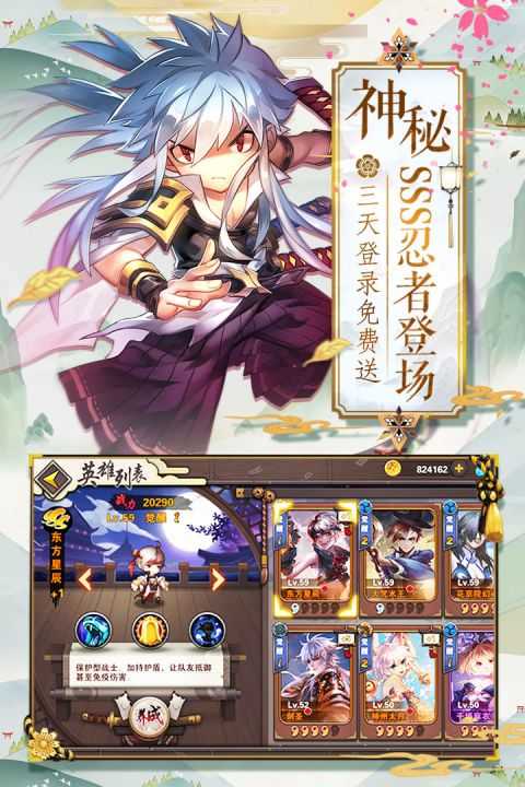 忍皇是暴走型刺客,主动技能能够攻击对方全体,五星技能能够让忍皇在生命值较低时增加防御和攻击,并且能够回复自身攻击50%的生命值,持续2回合。