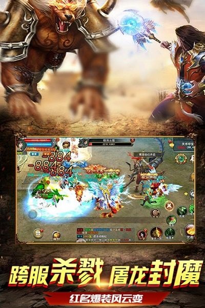 2、行会争斗、兄弟攻城、打怪爆装等熟悉玩法,用双手铸就王者霸业