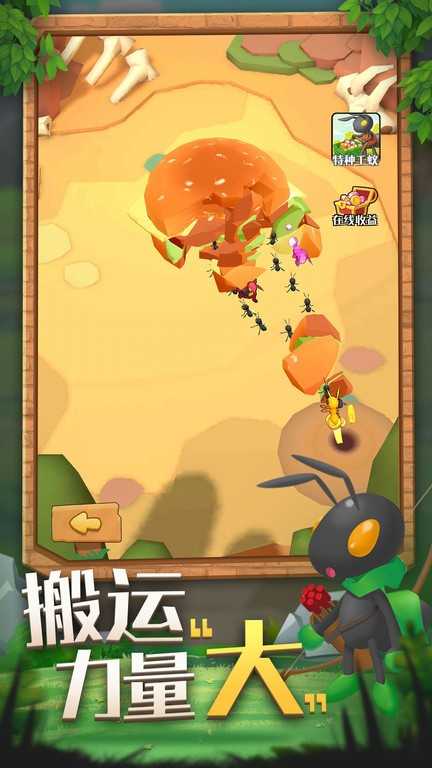 建造蚂蚁军团,加强属性速度战力,对抗一个个大型动物BOSS,建立你的蚂蚁帝国