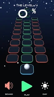 玩家操控黑色的小球进行不断的跳跃,跳过这些不合理的箭头,想要通关还是比较难的。球在平台上向前跳。你需要小心,你会遇到不同的平台,使你的旅程复杂化。但不要逗留,要迅速做出决定!游戏有20个关卡,可以帮助你理解和记住每个平台的特性以及它们所在位置的技巧。所有级别完成后,将打开无休止模式得分。使用显示屏的左侧和右侧指示跳跃方向。游戏有两个主题:白天和晚上。在无限模式下,级别是随机生成的。你能跳多远?