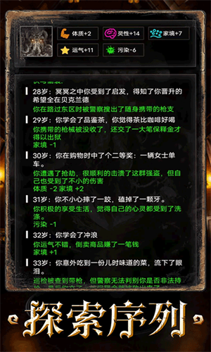 诡秘重开模拟器内置菜单是一款全新的暗黑文字冒险游戏,游戏内采用了丰富的克苏鲁剧情元素,人家将带来不同的诡异转生制敌,开始一系列的冒险生存。游戏内解锁了无限金币免费使用,帮助玩家更好地过关,感受不一样的剧情。