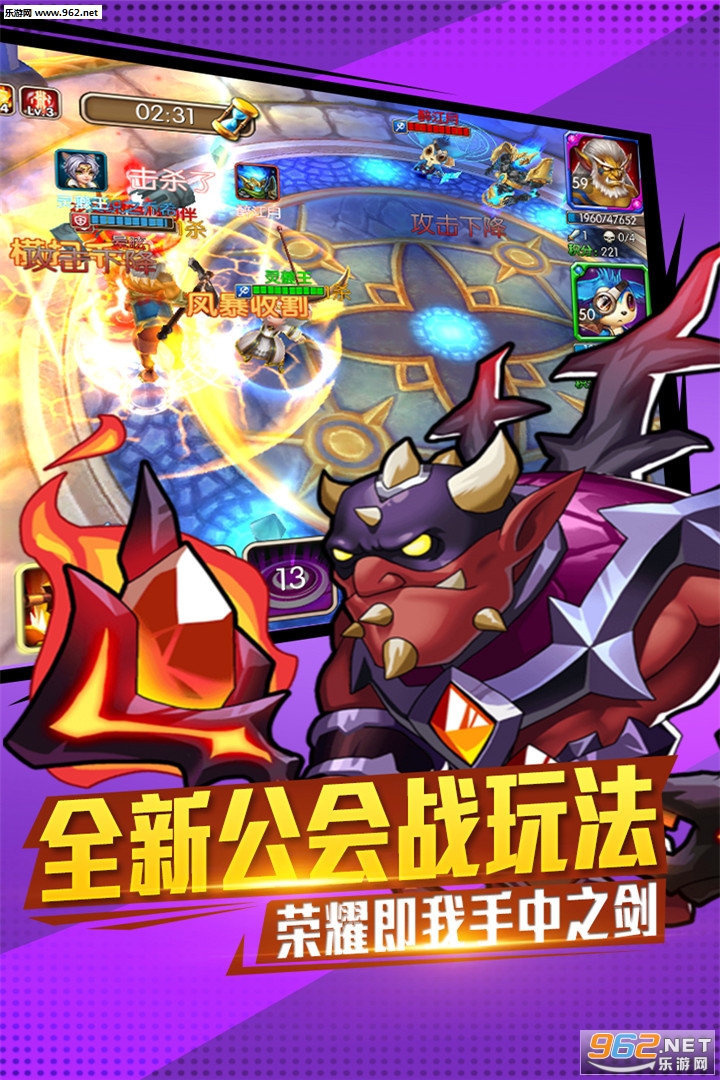 伙伴们齐心协力,挑战BOSS,获取丰厚奖励,共同为公会献礼!更有诸多能力迥异的英雄,等待各位的召唤哟!