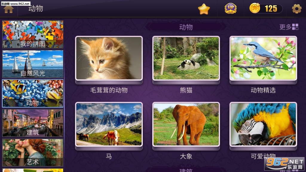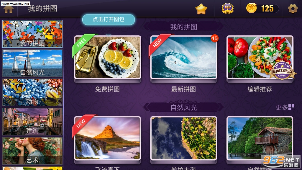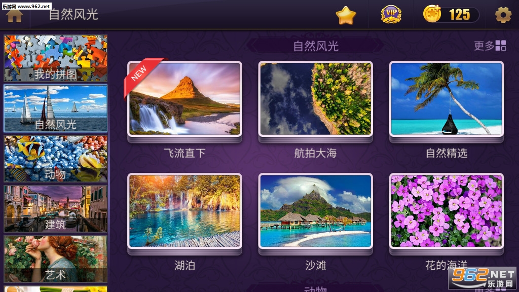 1、非常nice的一款益智类拼图游戏,游戏中拥有海量的拼图资源,并且都分好了类,非常的方便。