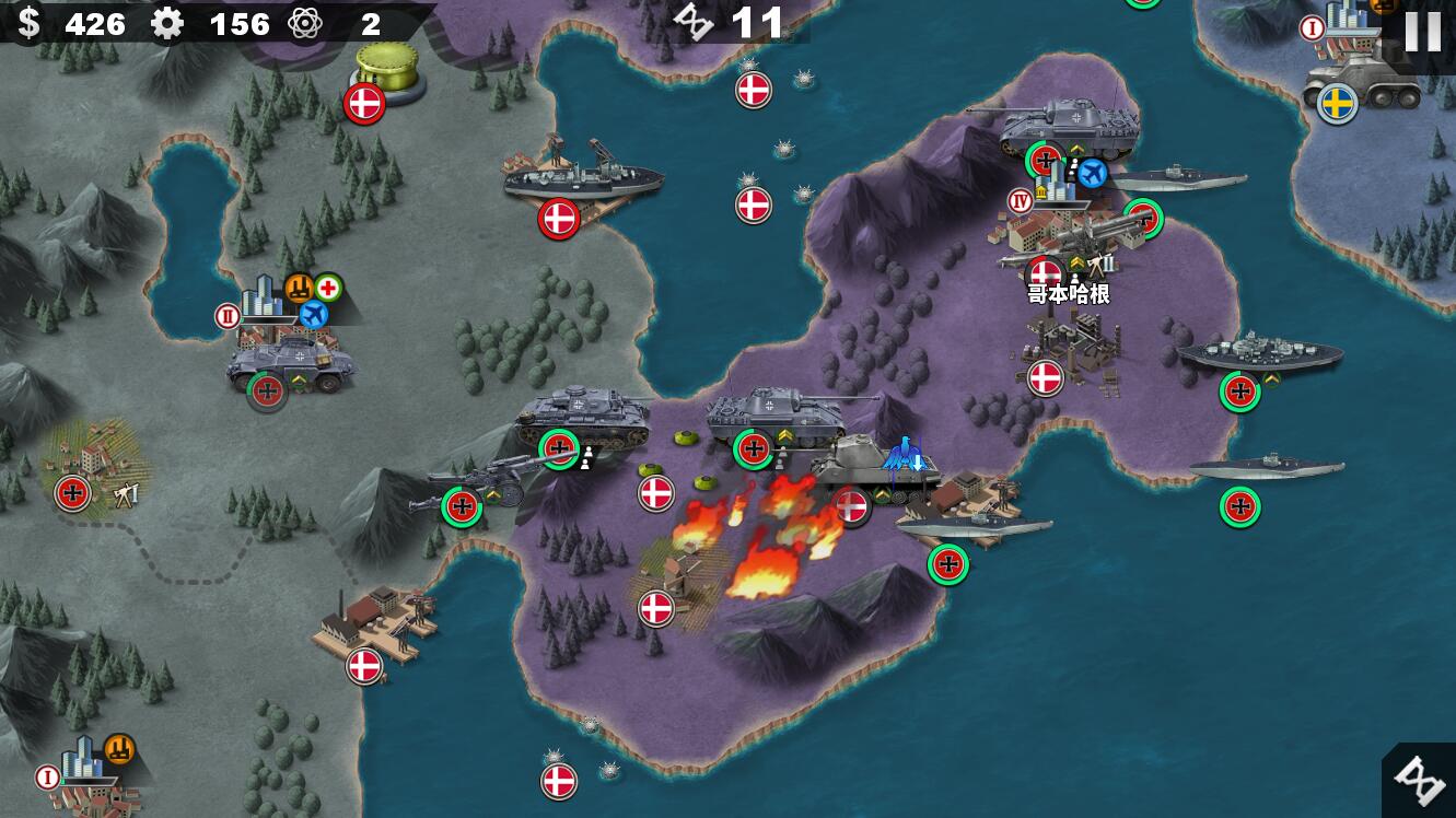 最后让我方的装甲车在左上方城市进行防守,以防敌方空降士兵,其他部队集中进攻哥本哈根即可,不久后便可迎来胜利。