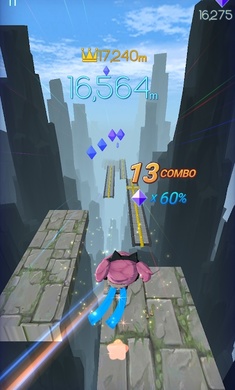 你玩的每一个游戏都是无止境的,但当你成功地跑得更远、飞得更远时,就会变得困难起来。浮式平台将开始移动,加速板和跳台将使你更难预测你将在何时何地着陆。