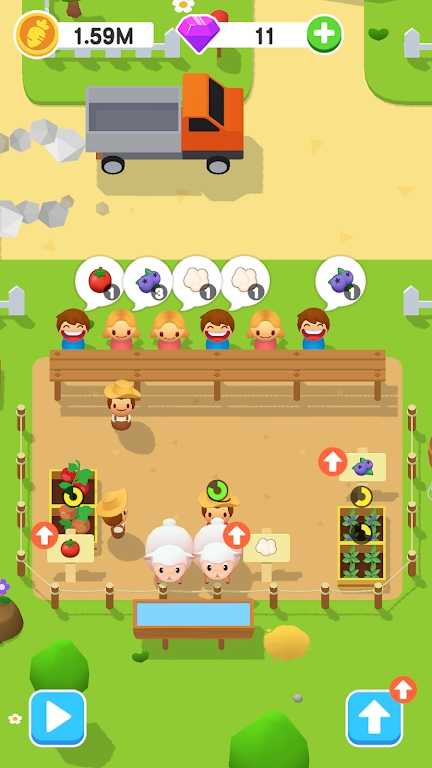 1、当生产设施让你的农场越来越红火,收获后继续播种收获更多的农作物,让小麦、母鸡、马、奶牛等动物做成的面包等产品迫不及待的加入你的行列。