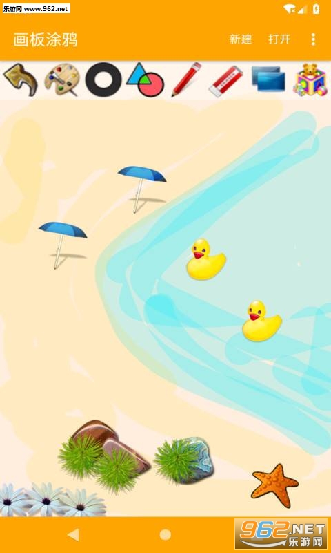 自由可以在手机或平板大屏幕上随意涂鸦,自由发挥,应用提供了大量背景图片,增加创造的灵感,画笔的粗细颜色形状都可调节,还有很多图标可以粘贴在画板上,保存功能可以让你的作品以图片的形式保存在SD卡里,打开功能可以继续完成上次的杰作。