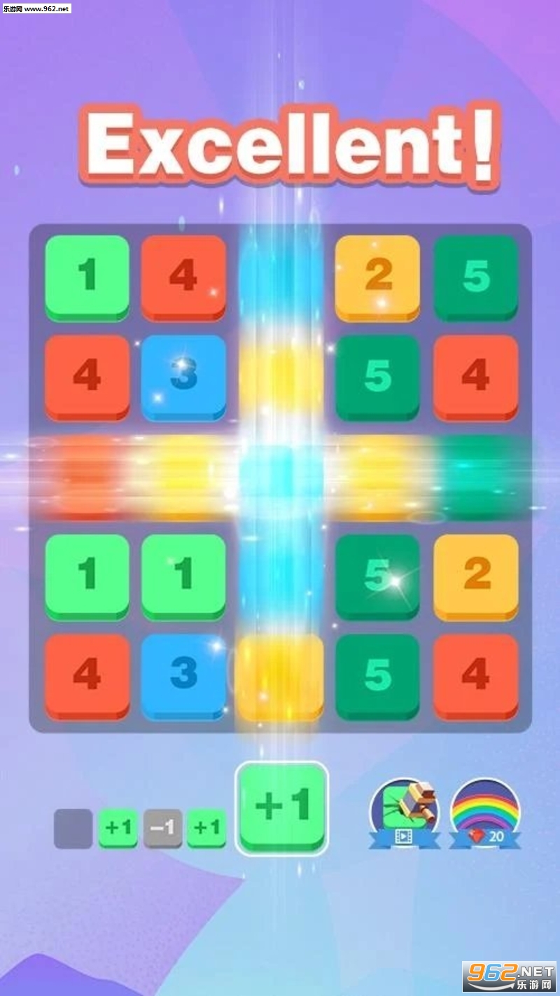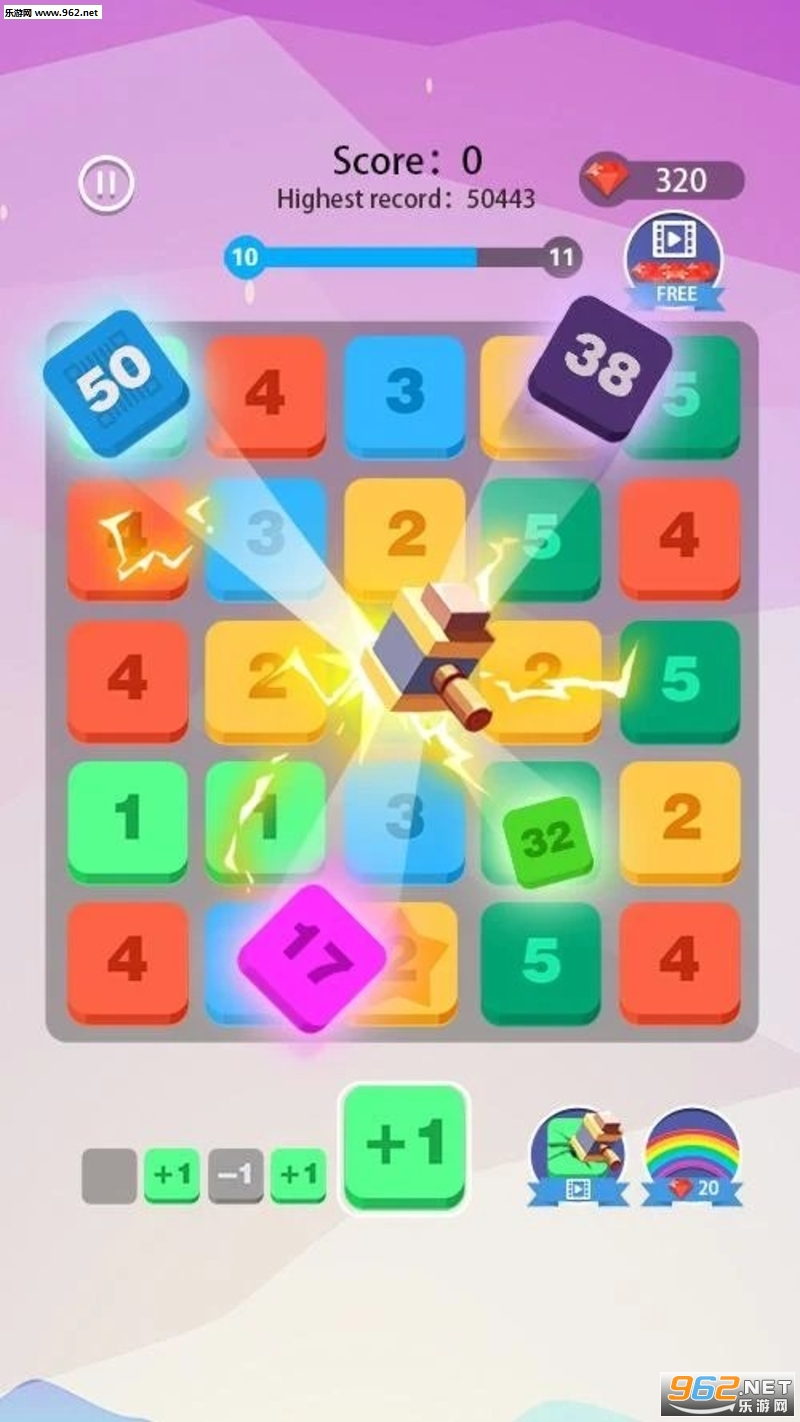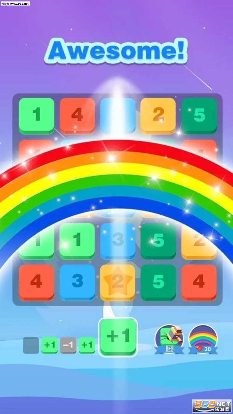 趣味的益智游戏,玩家的任务就是将方框中的数字进行加减,让至少三个相同的数字相连进行合并,合并的越多得分越高,如果下面能够加减的数字没有了游戏就结束了。