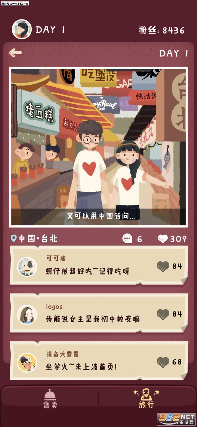 趣味的文字剧情游戏,玩家可以体验到一对情侣前往各种地方旅游,有欢乐,也有吵架,还有着一些休闲小游戏,让你体验不一样的旅游游戏,喜欢的朋友可以下载试试。