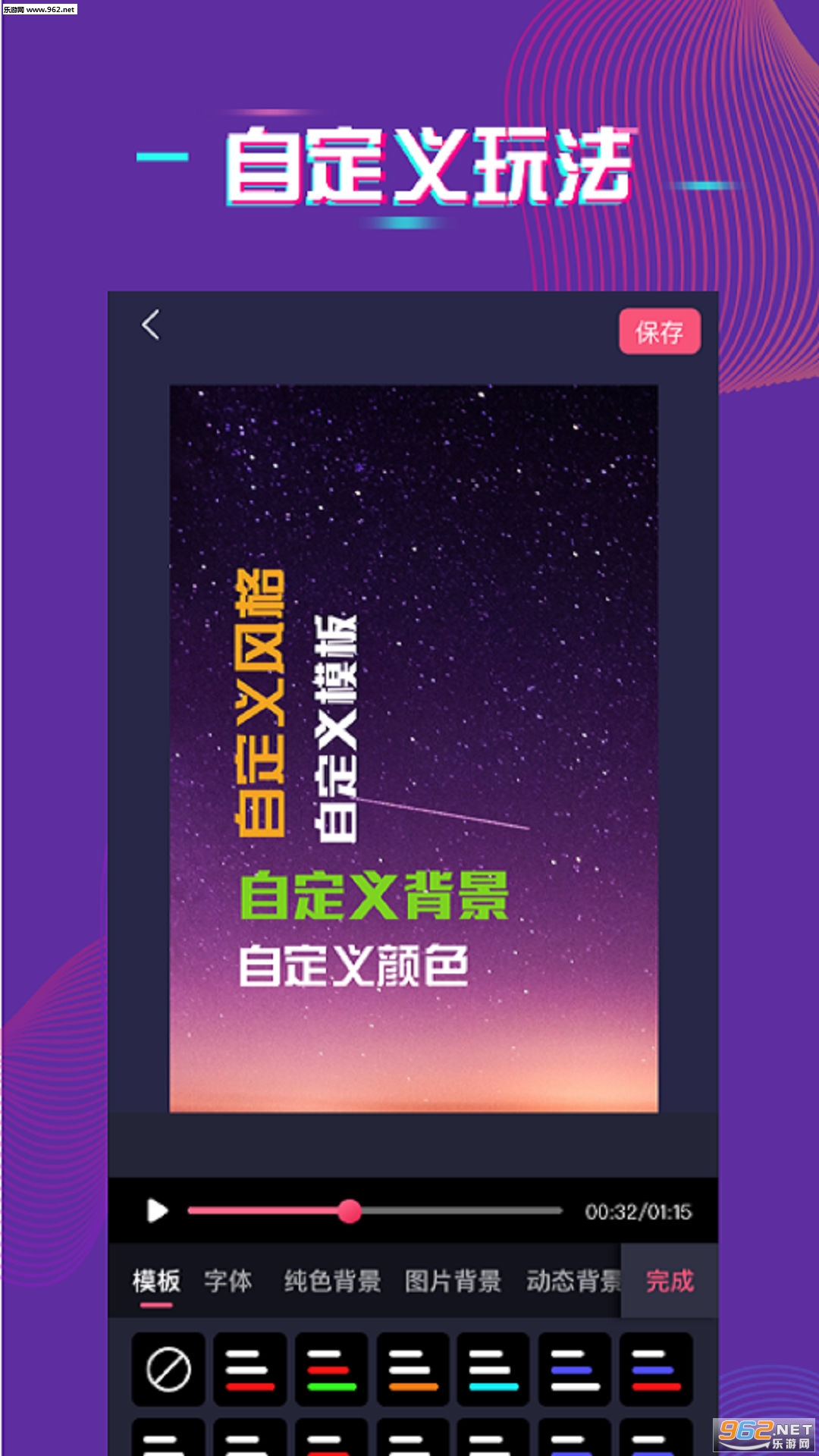 实用的文字视频制作软件,使用本款软件可以输入为一段文字,有着多种不同的排版和字体可以选择,可以一键生成文字动画视频,有需要的朋友可以下载试试。