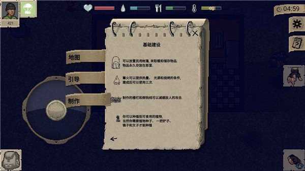 这是一个极富挑战的生存游戏,虽然从画面上看来该作似乎挺小巧的,但是事实上游戏的内容非常丰富充实,虽然在游戏新手引导关卡中,我们可以很轻松找到小船逃生,但是真正进入游戏才会发现,想要活下去远没有那么简单,危机四伏已经不足形容这个游戏的难度,无可奈何才是这个游戏应该得到的尊荣。