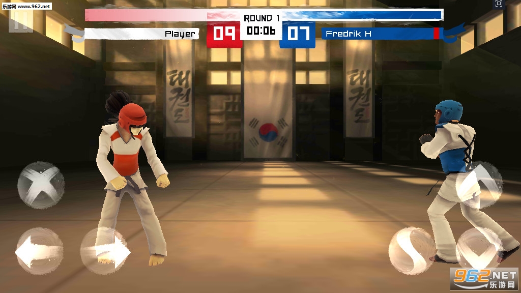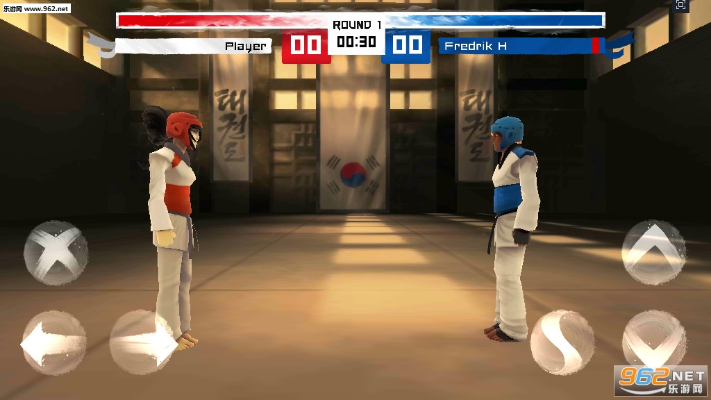 本作需要玩家将尽格斗所能将你的跆拳道对手一一打败,赢取最终胜利。看上去非常有意思的一对一徒手格斗游戏。拳道是一项起源于朝鲜半岛的运动,主要使用手脚来进行格斗对抗。而游戏玩法与一般格斗游戏没有太大变化,同样是通过触屏操作不同招式按键来达到控制己方选手对对手展开攻势,并最终打倒对手的目的。