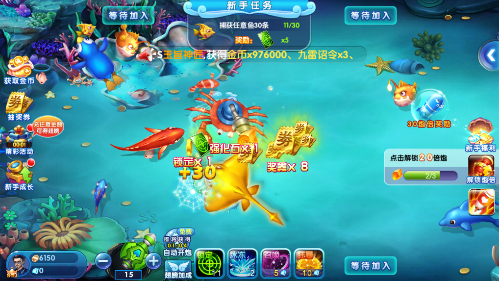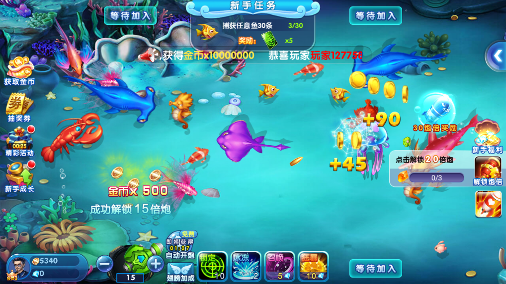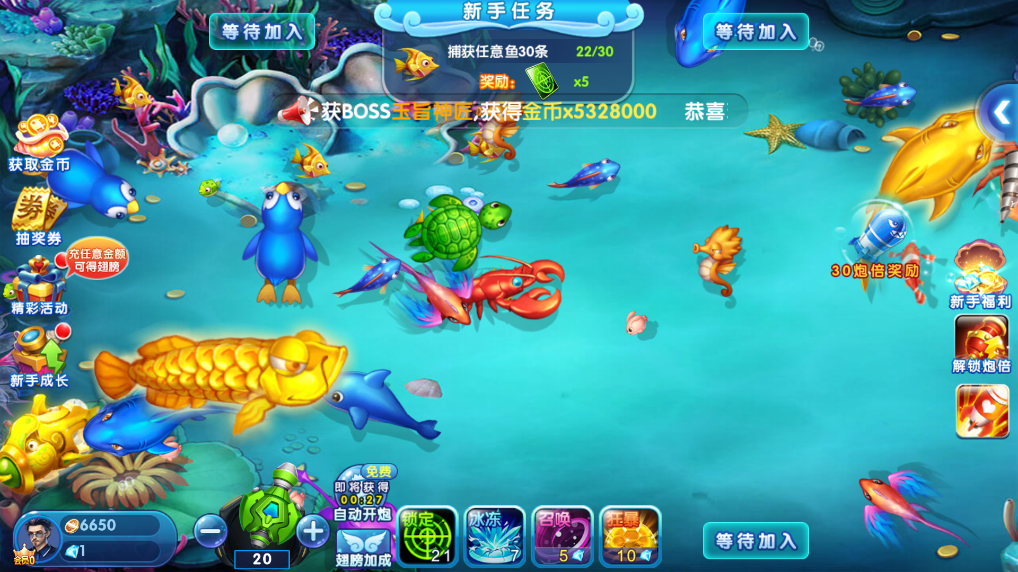 劲爽炫酷炮台和华丽绚烂翅膀,让您在海底的捕鱼世界也能炫出个性,惊艳四座!